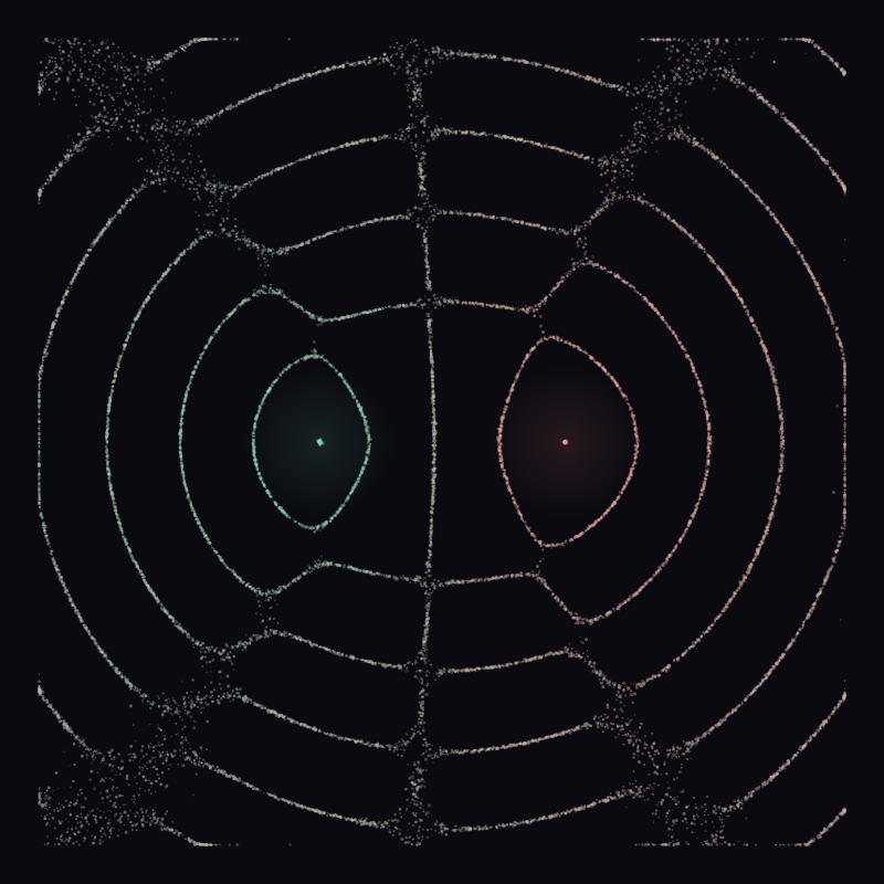 i. Shallow phase offset, braided nodal bands.
